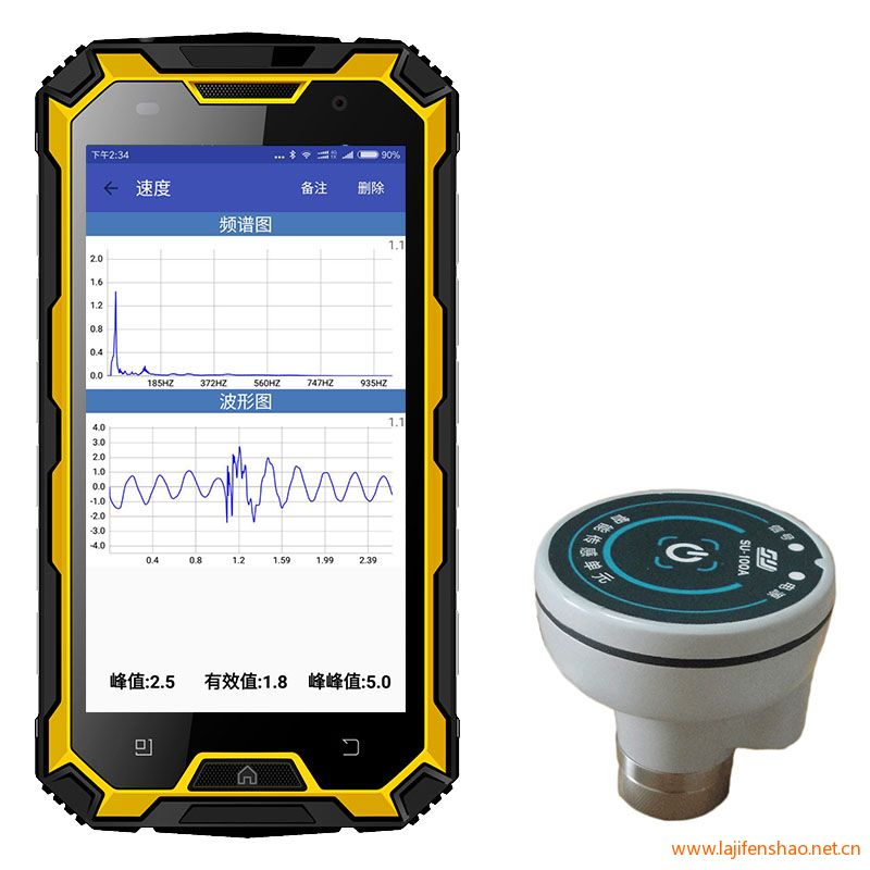 智能測(cè)振儀是將智能手機(jī)(基于安卓系統(tǒng)APP)與智能傳感單元(即小蘑菇)連接起來(lái),,借助手機(jī)強(qiáng)大的數(shù)據(jù)處理功能、頁(yè)面顯示與設(shè)計(jì)功能、拍照攝像功能、電子標(biāo)簽掃描功能,從而將儀器的用戶體驗(yàn)達(dá)到一個(gè)更高的高度。智能檢測(cè)單元類似振動(dòng)傳感器,接收信號(hào),,通過(guò)內(nèi)置藍(lán)牙模塊,將振動(dòng)信號(hào)傳輸給手機(jī)。手機(jī)通過(guò)APP軟件將振動(dòng)信號(hào)的各項(xiàng)參數(shù)顯示到界面上。